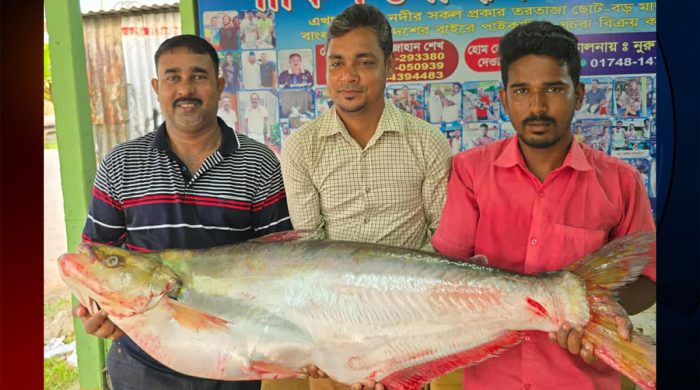 রাজবাড়ীর গোয়ালন্দ উপজেলার দৌলতদিয়া এলাকায় পদ্মা নদীতে ধরা পড়া ১১ কেজি ওজনের একটি ঢাই মাছ বিক্রি হয়েছে ৪৬ হাজার ২০০ টাকায়। আজ সোমবার (২৯ সেপ্টেম্বর) সকালে খুলনার এক সিঙ্গাপুর প্রবাসী মাছটি