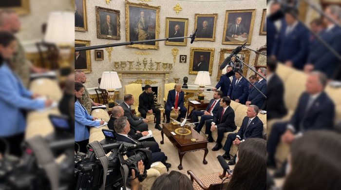 হোয়াইট হাউসে মার্কিন প্রেসিডেন্ট ডোনাল্ড ট্রাম্পের সঙ্গে বৈঠকে বসেছেন ইউক্রেনের প্রেসিডেন্ট ভলোদিমির জেলেনস্কি এবং ইউরোপীয় নেতারা। সোমবার (১৮ আগস্ট) ইউক্রেন যুদ্ধ বন্ধের বিষয়ে আলোচনা করতে এ বৈঠকের ডাক দেন ডোনাল্ড