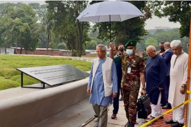স্বৈরাচার শেখ হাসিনার পতন ও পলায়নের প্রথম বর্ষপূর্তির দিনে জুলাই ঘোষণাপত্র পাঠ করছেন প্রধান উপদেষ্টা অধ্যাপক মুহাম্মদ ইউনূস। মঙ্গলবার (৫ আগস্ট) বিকাল ৫টায় জাতীয় সংসদের দক্ষিণ প্লাজায় জুলাই ঘোষণাপত্র পাঠ