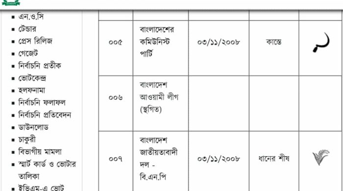 নির্বাচন কমিশনের (ইসি) ওয়েবসাইট থেকে নৌকা প্রতীক সরিয়ে ফেলেছে ইসি। ইসির ওয়েবসাইটে আওয়ামী লীগ (নিবন্ধন স্থগিত) নামের পাশে প্রতীক হিসেবে ‘নৌকা’ সরিয়ে ফেলেছে সাংবিধানিক সংস্থাটি। এ বিষয়ে জানতে চাইলে নির্বাচন